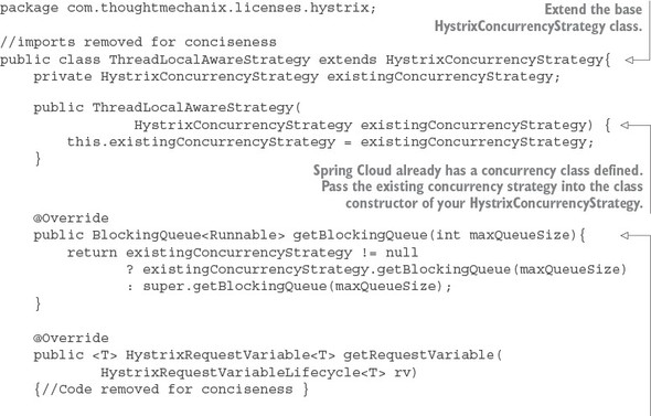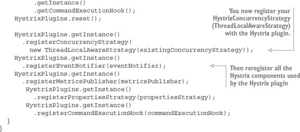 Listing 5.12. Hooking custom HystrixConcurrencyStrategy class into Spring Cloud