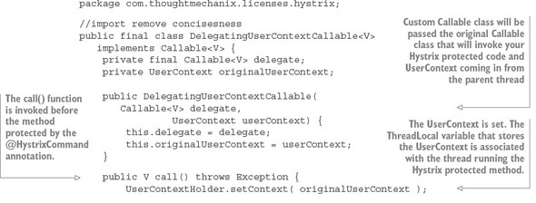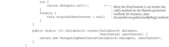 Listing 5.11. Propagating the UserContext with DelegatingUserContextCallable.java