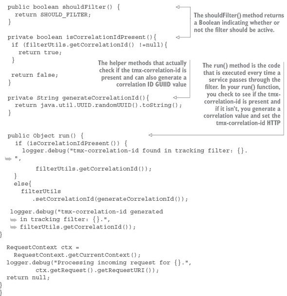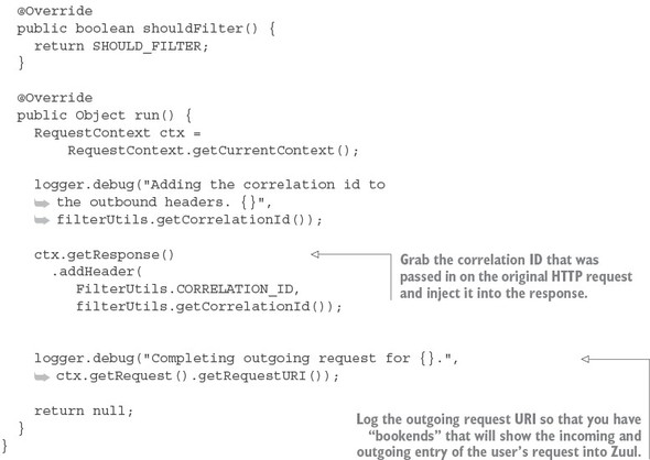 Listing 6.6. Zuul pre-filter for generating correlation IDs