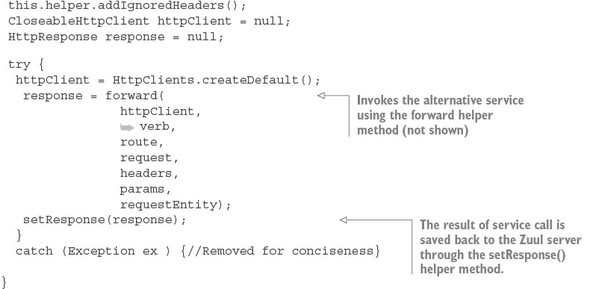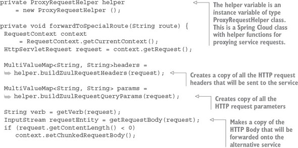 Listing 6.18. The forwardToSpecialRoute invokes the alternative service