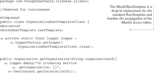Listing 7.7. Using the OAuth2RestTemplate to propagate the OAuth2 access token