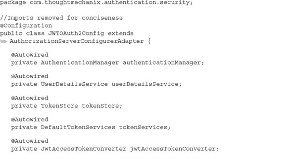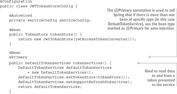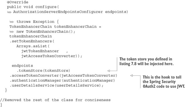 Listing 7.9. Hooking JWT into your authentication service via the JWTOAuth2Config class