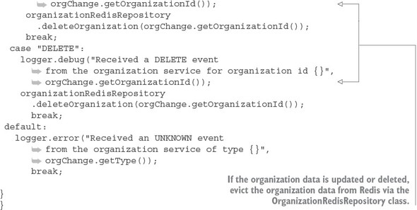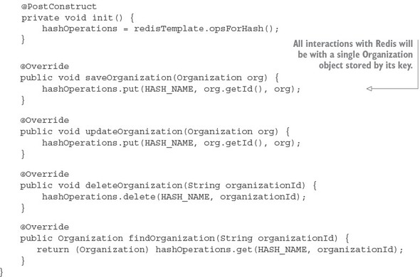 Listing 8.9. OrganizationRedisRepository defines methods used to call Redis