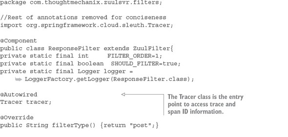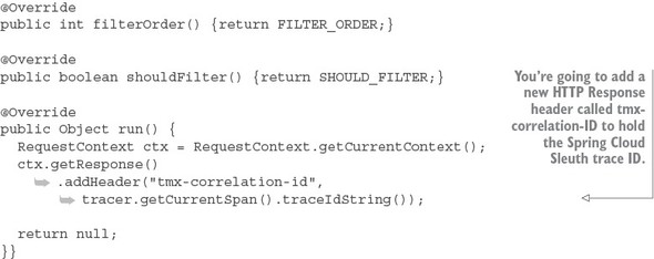 Listing 9.2. Adding the Spring Cloud Sleuth trace ID via a Zuul POST filter