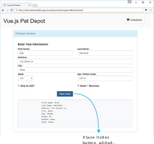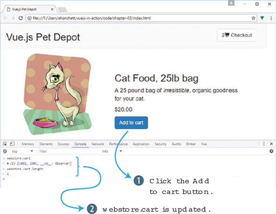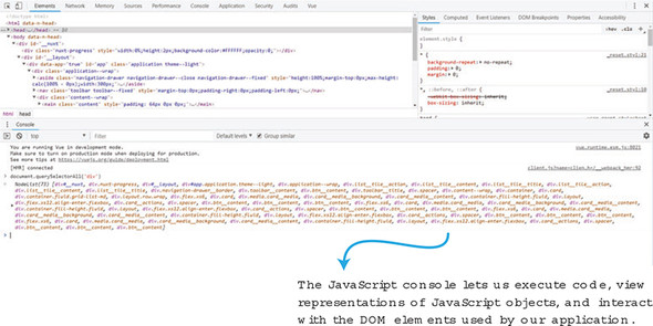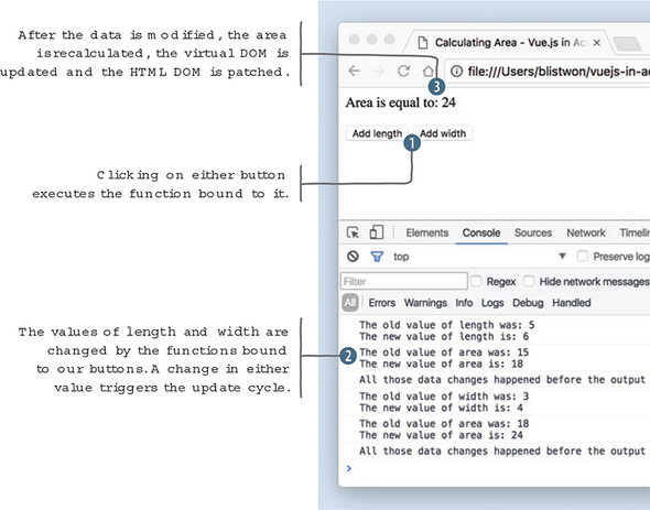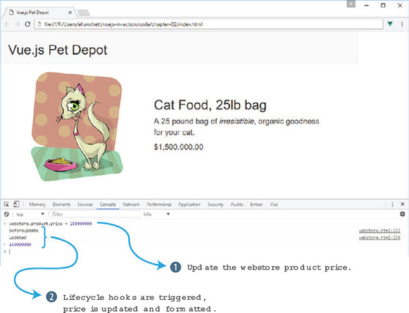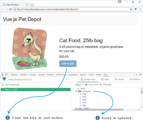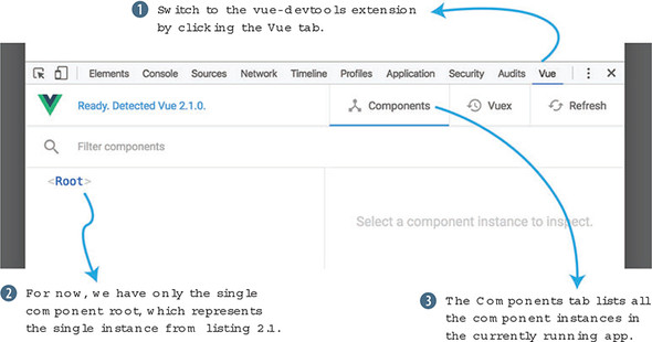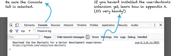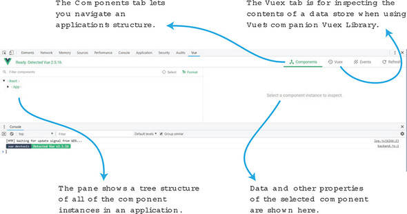 Erik has carried that people-focused spirit into this book. First, it’s remarkably visual. The many detailed illustrations and annotated screenshots firmly ground his examples in the workflow of real developers. As a result, you actually learn how to use the browser and Vue’s devtools to confirm what you’re learning—and more importantly, troubleshoot when something goes wrong.