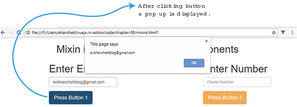 Listing 9.2. Adding the Vue.js instance: chapter-09/mixins-vue.html