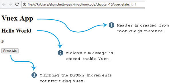 Listing 10.3. Adding our Vue.js instance: chapter-10/vuex-instance.html