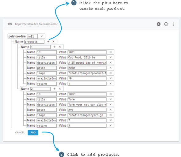 Listing 11.15. Setting up Firebase and initializing files: chapter-11/petstore/src/firebase.js