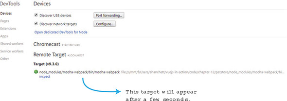 Open your Chrome browser and type the URL: chrome://inspect. This opens a Devices page (figure 12.5).