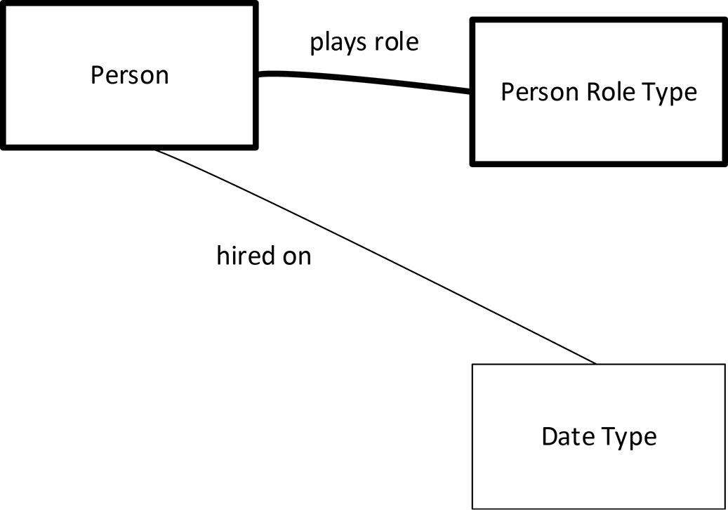 Figure 17-2 is a mini-ontology, in that it expresses relationships which exist between a class of real-world objects (Person), a type of behavior of persons in the real world (Person Role Type), and a type of data (Date Type). As mentioned in chapter 8, COMN can be used as a graphical notation for ontologies.