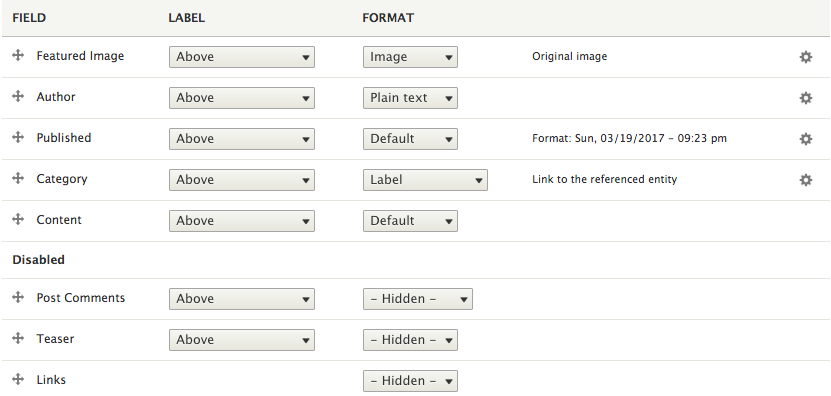 Most users when they view a blog post expect to see the title followed by a Featured Image, the Author, any tags, and then the content. We can quickly fix our Post by reordering the fields accordingly: