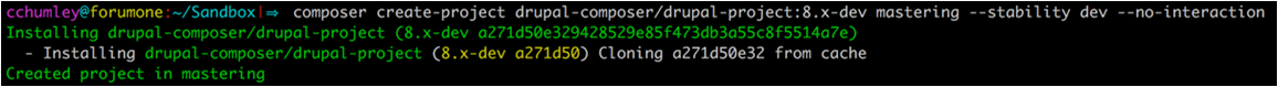 composer create-project drupal-composer/drupal-project:8.x-dev mastering --stability dev --no-interaction