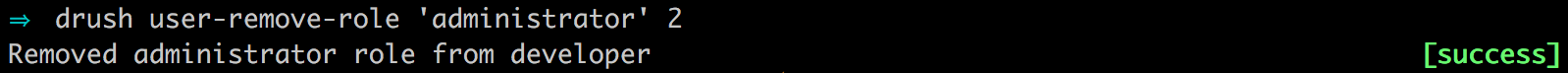 To remove a role from a user using Drush, we need to simply perform the opposite command by entering the following: