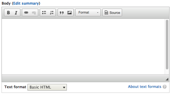 CKEditor comes configured by default with the Standard profile installation, including a few text formats for us to use.