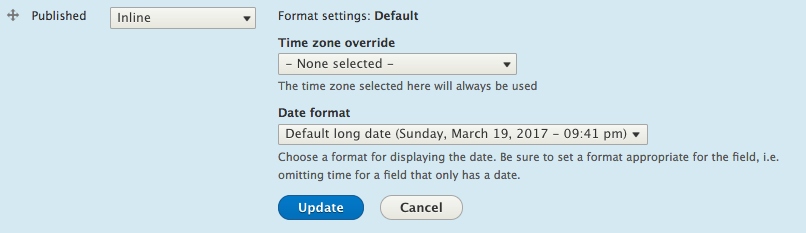 For demonstration, we will choose to leave the default format but adjust the configuration of the formatter by selecting the gear icon to the right of the field, which will expose more options.