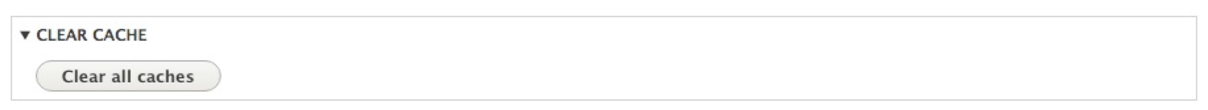 As Drupal tries hard to optimize a site, there are quite a few items that are cached. This requires us to know how to clear the cache to ensure that configuration changes are applied. For example, anytime we develop a theme, install a module, or work with the API, we will find ourselves needing to clear the cache. To utilize the administration panel, we simply need to click on the Clear all caches button located under the CLEAR CACHE section: