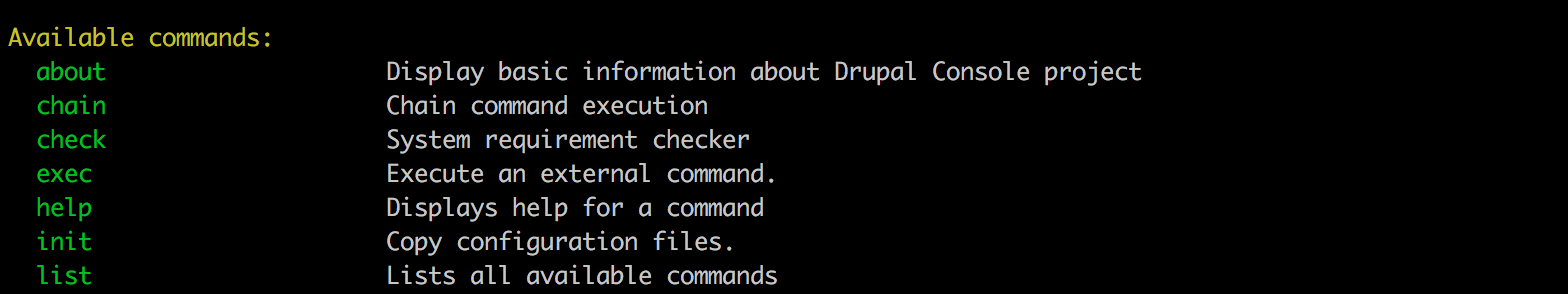 - Run Drupal Console to list all commands:
