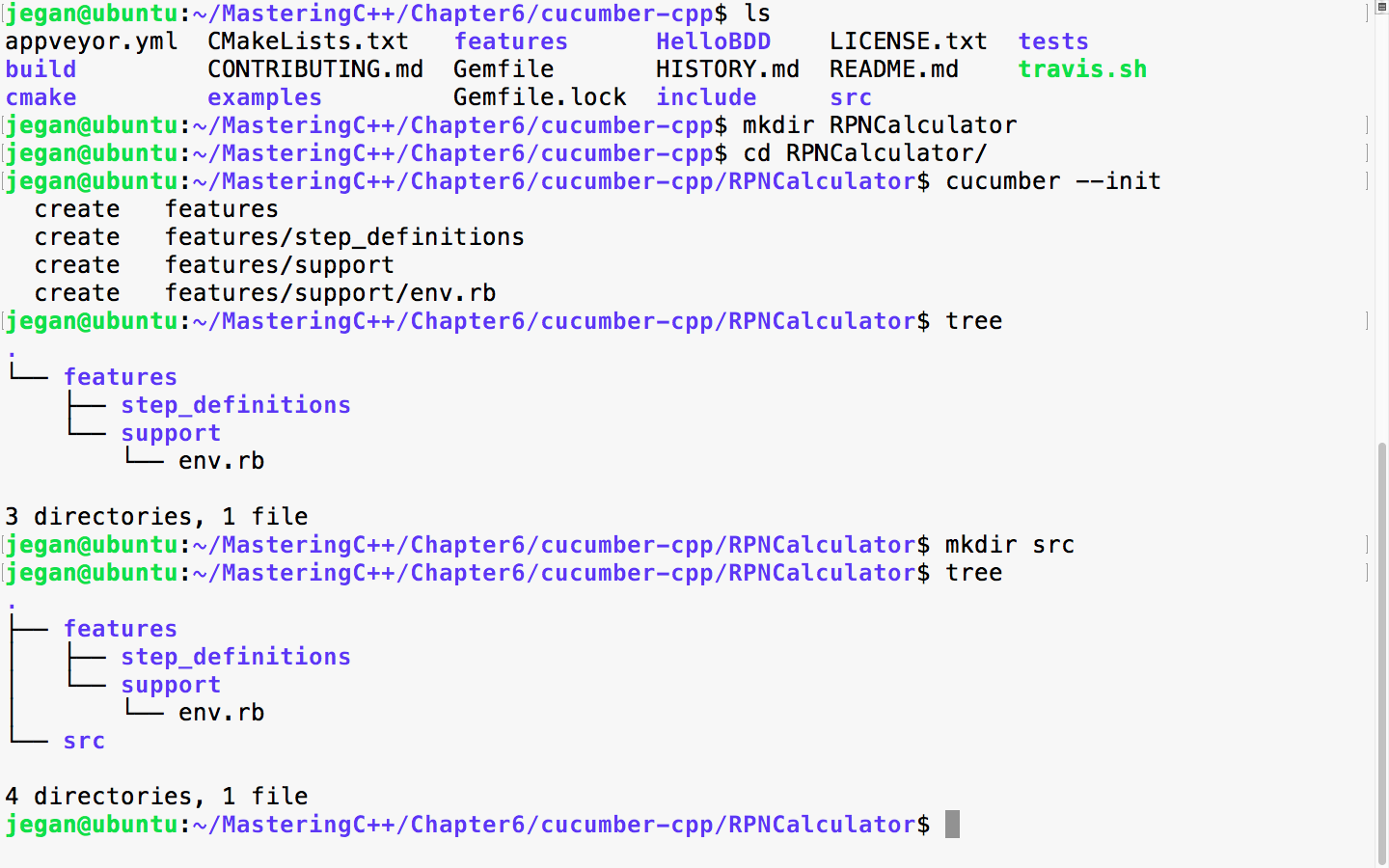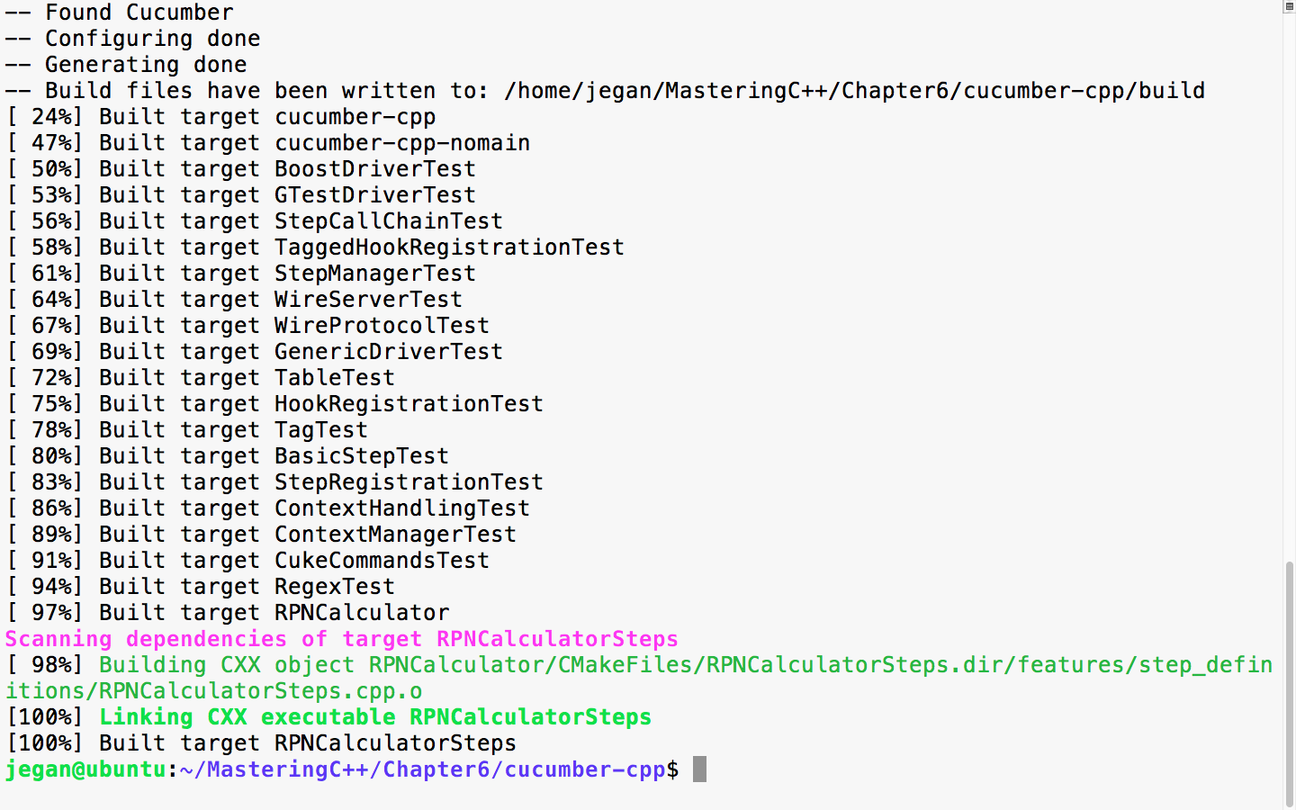 Now, let's build our project with the following command from the cucumber-cpp home directory: