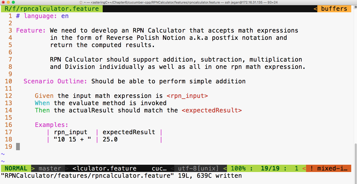 Now, let's start with the rpncalculator.feature file, as shown in the following screenshot: