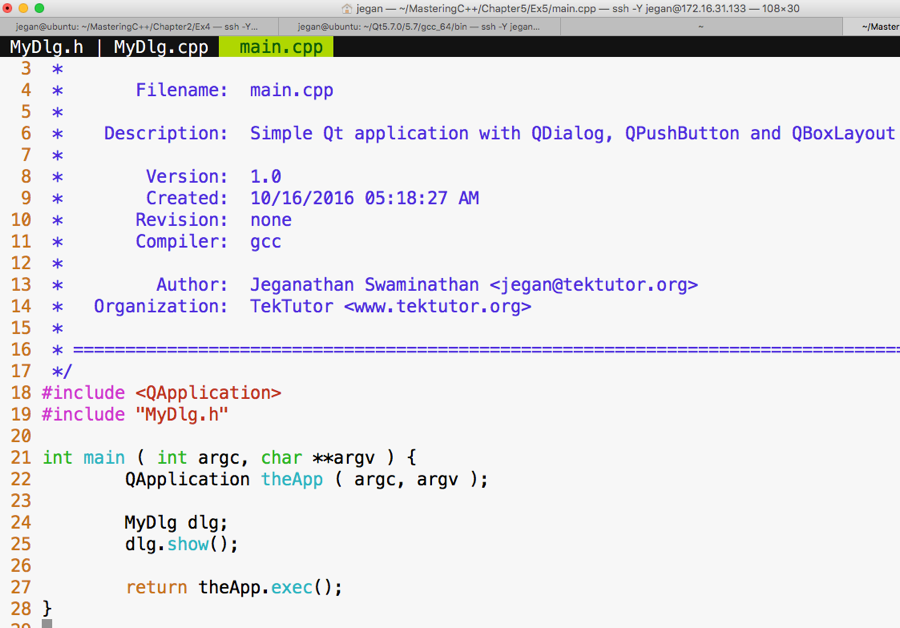 Chapter 5, Developing GUI Applications in C++, gives an overview of Qt and provides you with step-by-step instructions to install Qt on Linux and Windows. The chapter gradually helps you develop impressive GUI applications with interesting widgets and various layouts.
