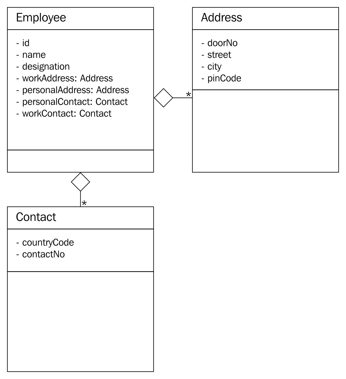 As you can see in the preceding image, the Mobile class has an instance of Camera and the has a form used is composition, which is an exclusive ownership relationship.