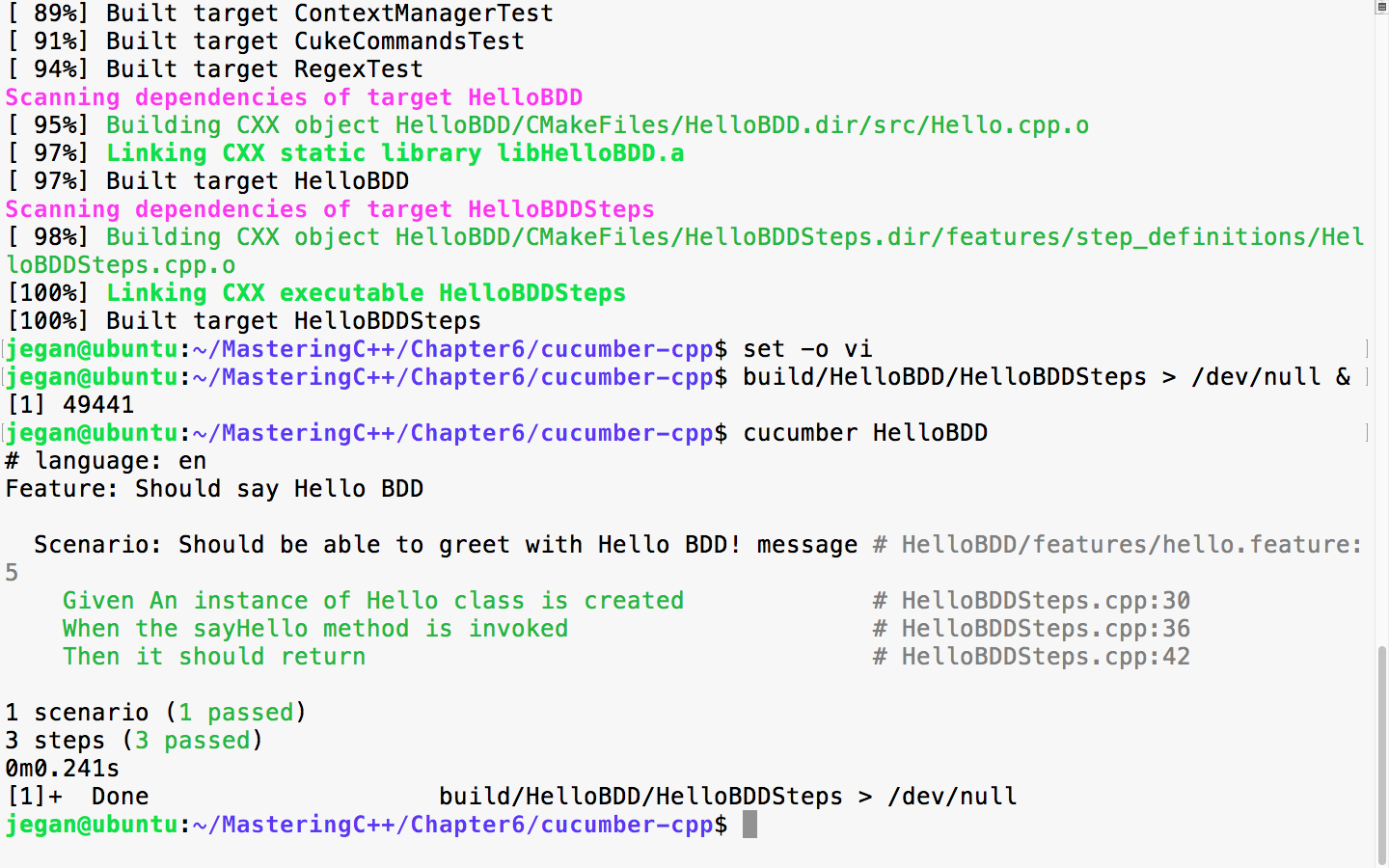 Chapter 8, Behavior-Driven Development, gives an overview of BDD and guides you through the installation, integration, and configuration of the Cucumber framework on Linux platforms. It also explains Gherkin and helps you write BDD test cases.