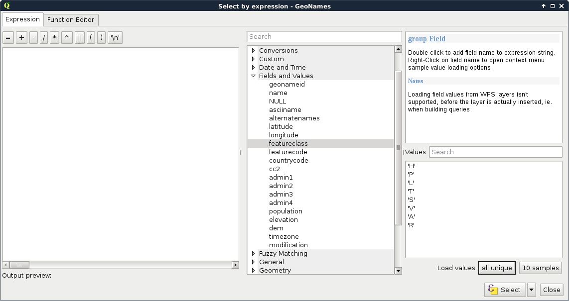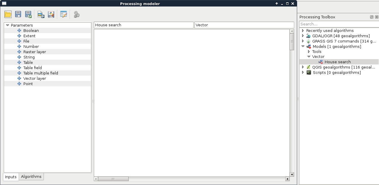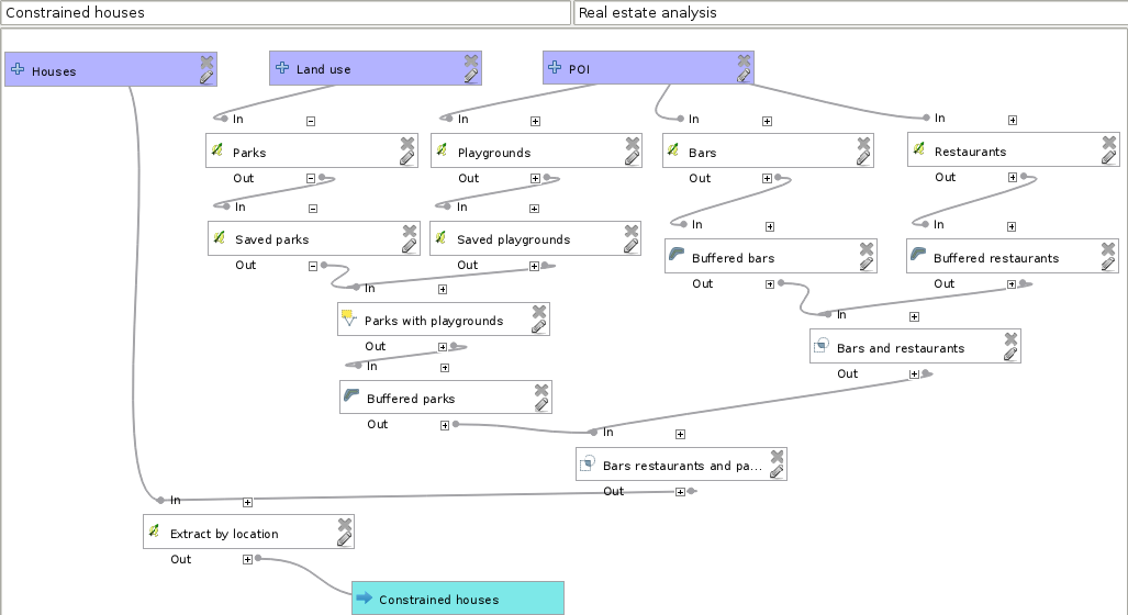 Appendix 1.8: Do you need an Extract by expression tool in QGIS? Build one yourself! You can easily create such a model by requiring a Vector layer input of any type, a String input for the expression, and linking the Select by expression and the Save selected features tools together: