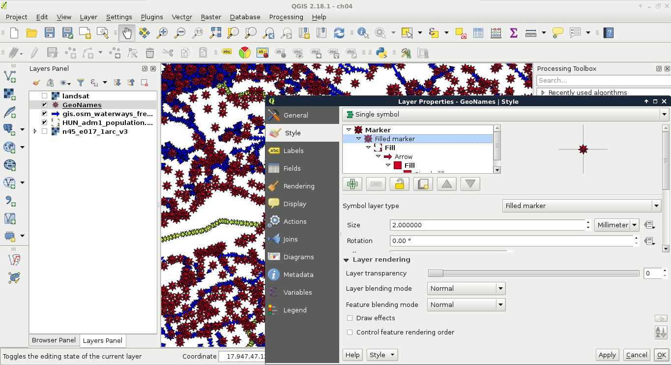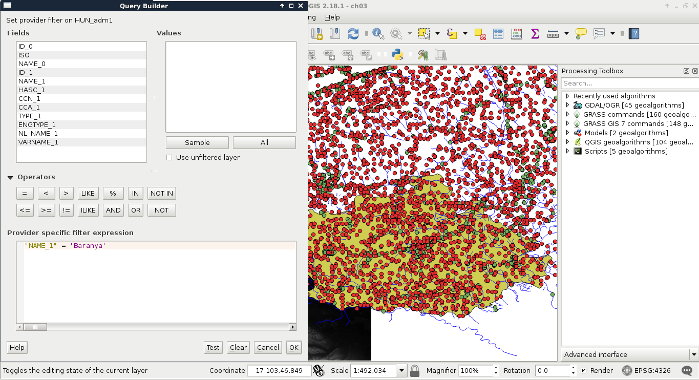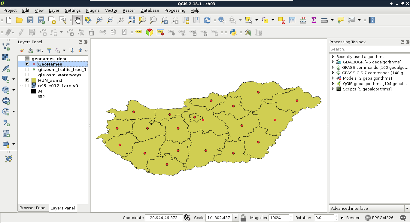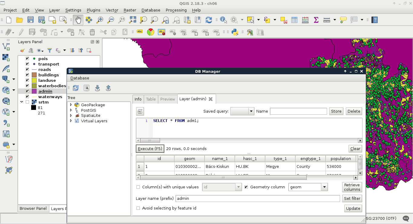 Chapter 3, Using Vector Data Effectively, shows you how you can interact with vector data in the GIS software. It discusses GUI-based queries, SQL-based queries, and basic attribute data management. You will get accommodated to the vector data model and can use the attributes associated to the vector features in various ways.