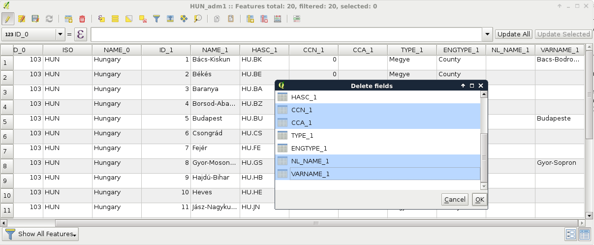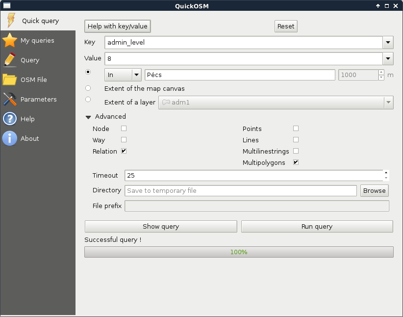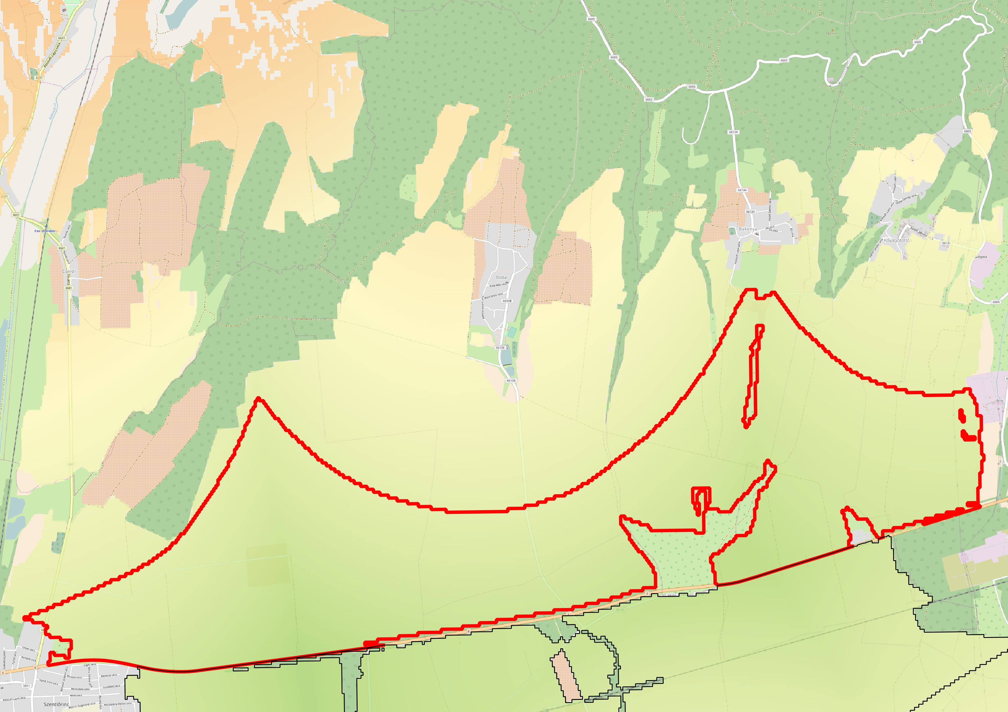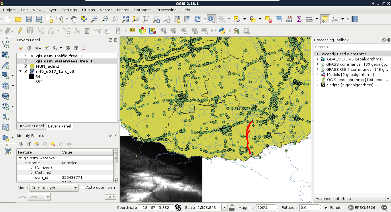 Appendix 1.5: Settlement data of my study area downloaded from the OpenStreetMap database via the QuickOSM plugin using the Overpass API: