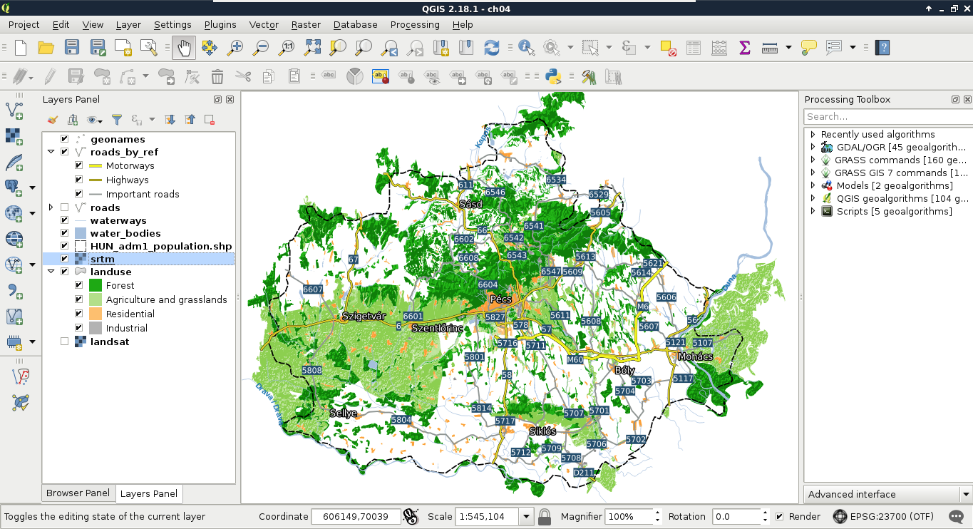 Chapter 2, Accessing GIS Data with QGIS, teaches you about the basic data models used in GIS. It discusses the peculiarities of these data models in detail, and also makes you familiar with the GUI of QGIS by browsing through some data.