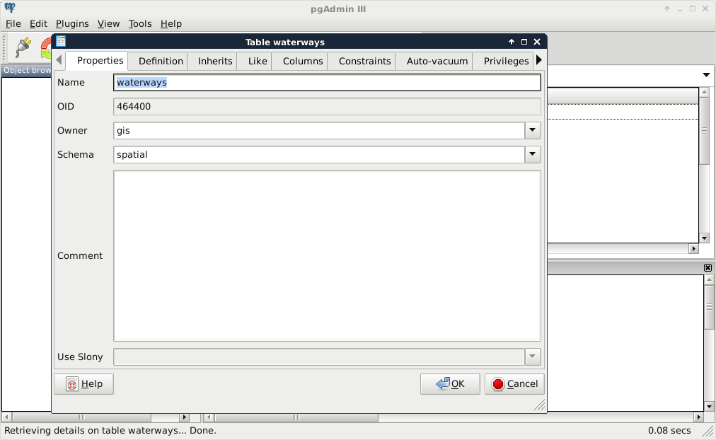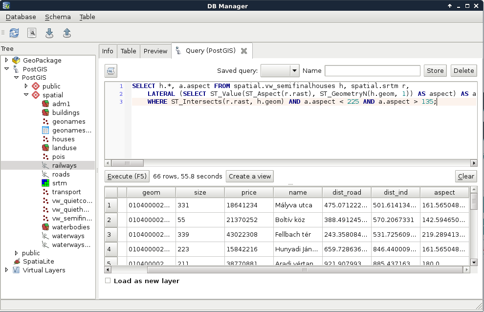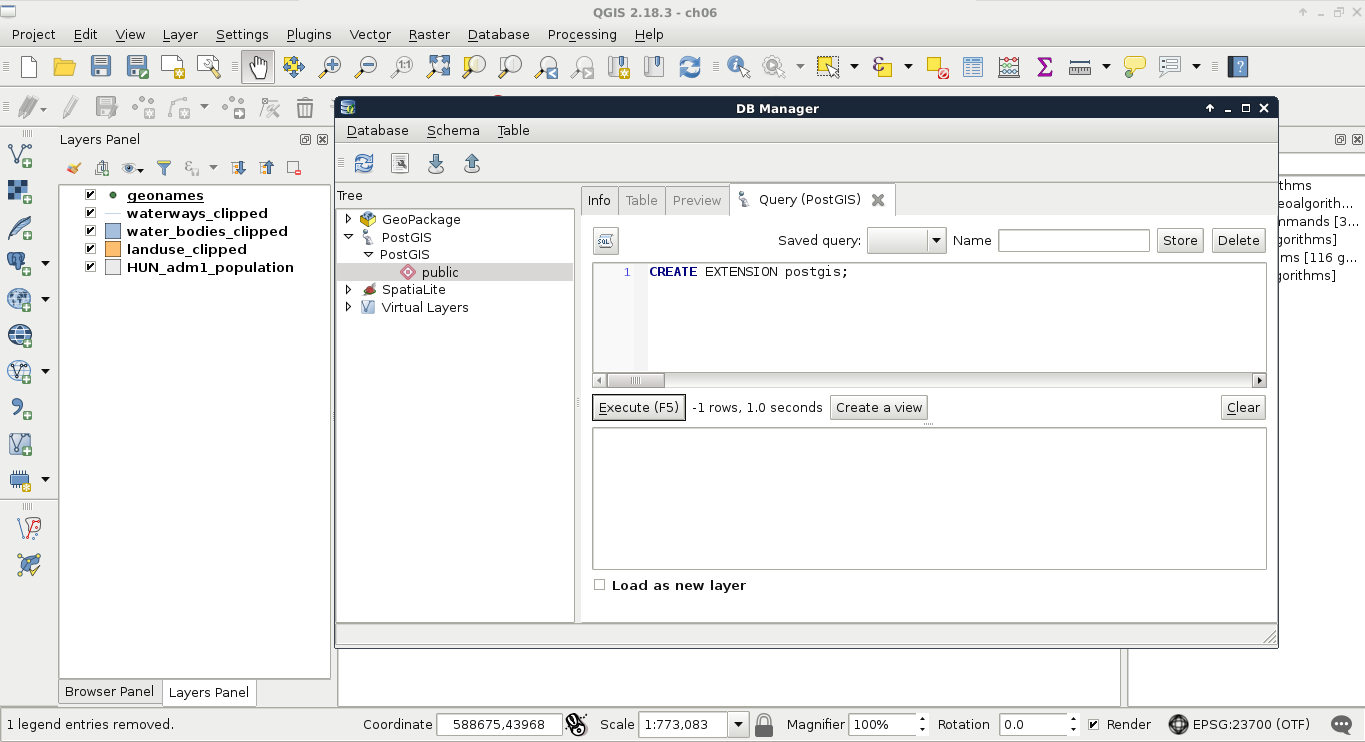 Chapter 7, A PostGIS Overview, shows what other options you have with your PostGIS database. It leaves QGIS and talks about important PostgreSQL and PostGIS concepts by managing the database created in the previous chapter through PostgreSQL's administration software, pgAdmin.