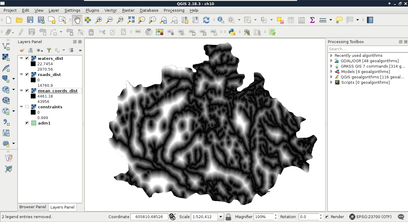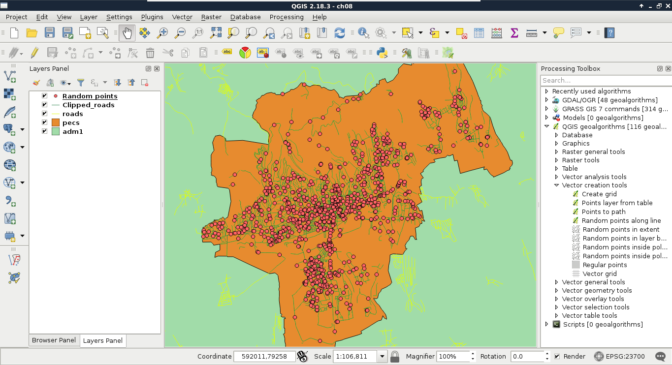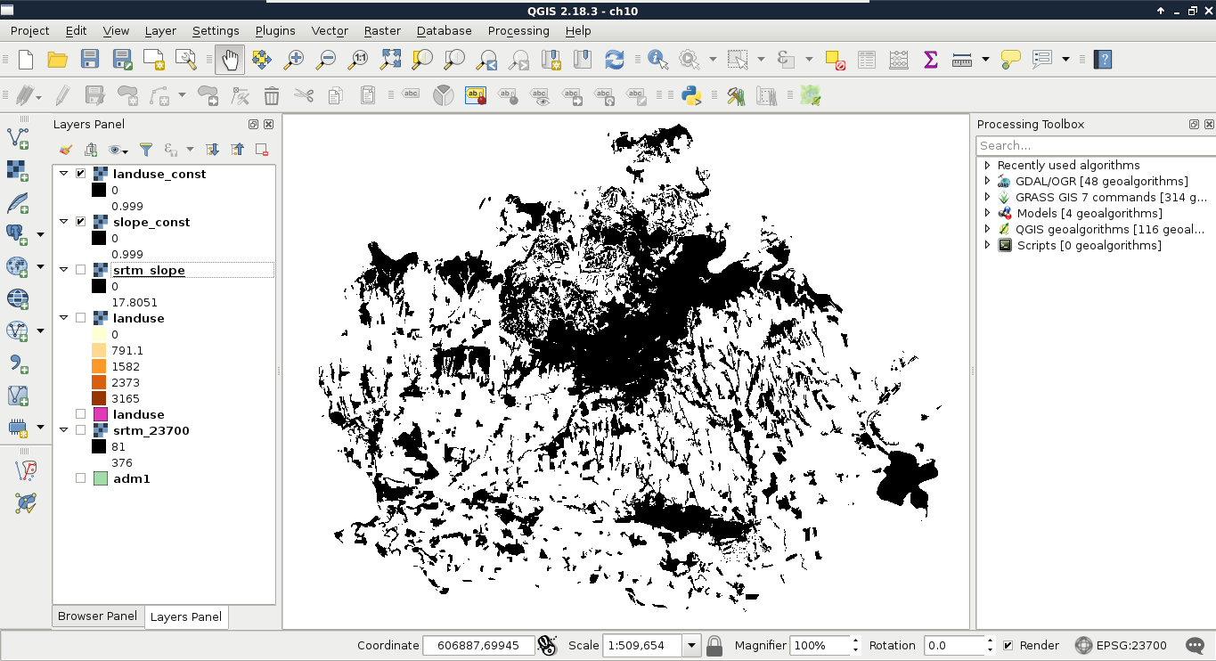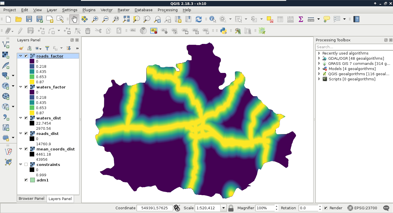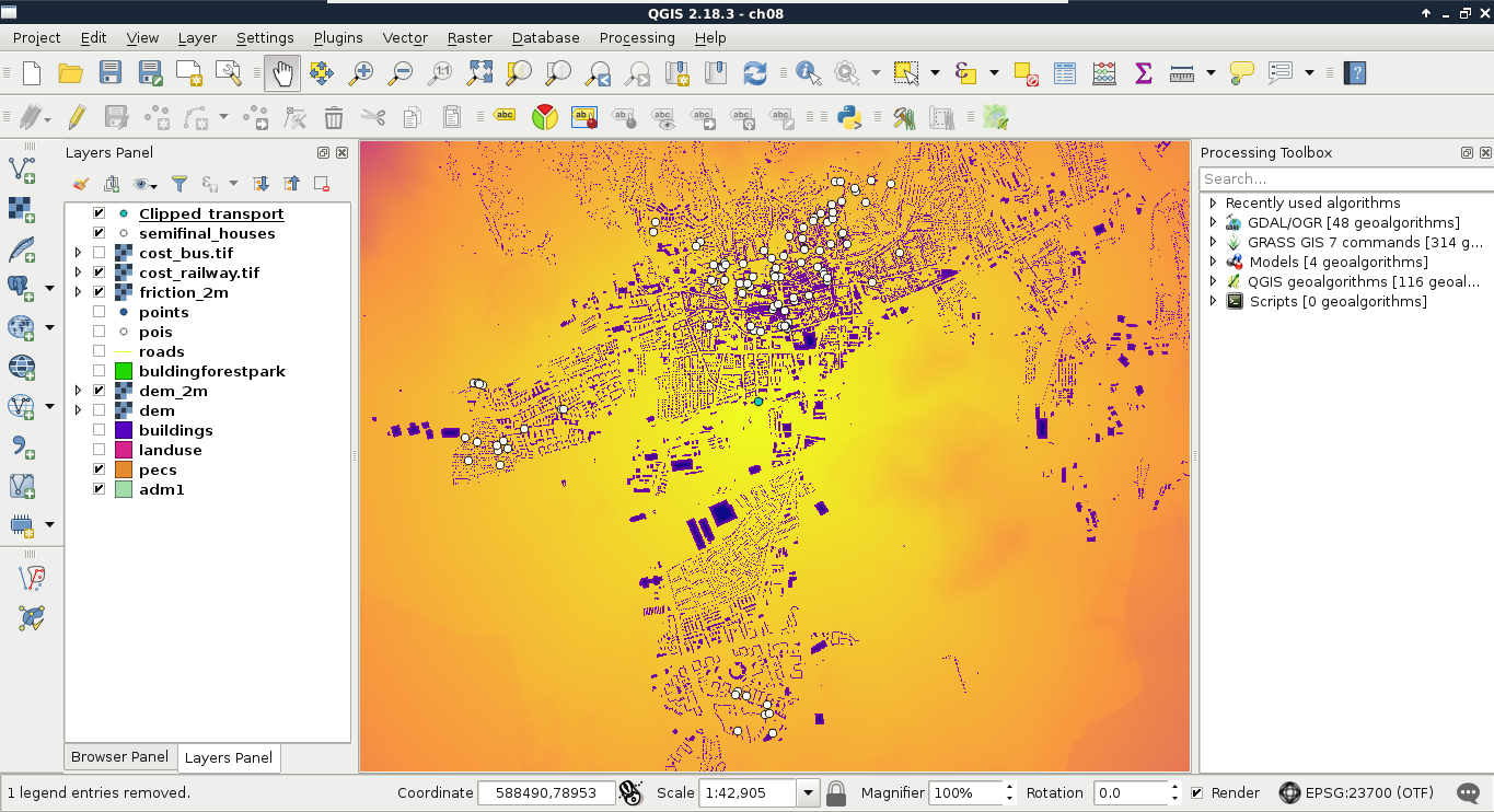 Chapter 8, Spatial Analysis in QGIS, goes back to QGIS in order to discuss vector data analysis and spatial modeling. It shows you how different geometry types can be used to get some meaningful results based on the features' spatial relationship. It goes through the practical textbook example of delimiting houses based on some customer preferences.