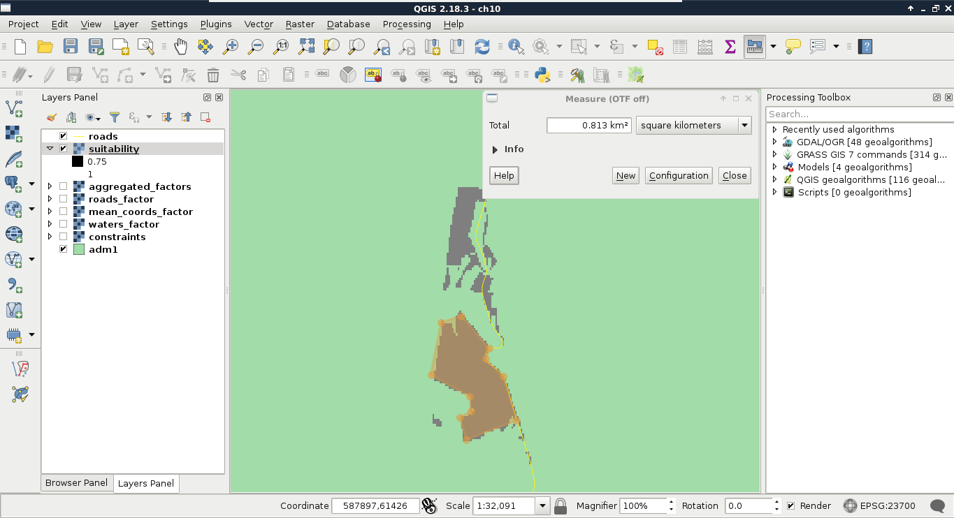 Chapter 9, Spatial Analysis on Steroids - Using PostGIS, reiterates the example of the previous chapter, but entirely in PostGIS. It shows how a good software choice for the given task can enhance productivity by minimizing manual labor and automating the entire workflow. It also introduces you to the world of PostGIS spatial functions by going through the analysis again.