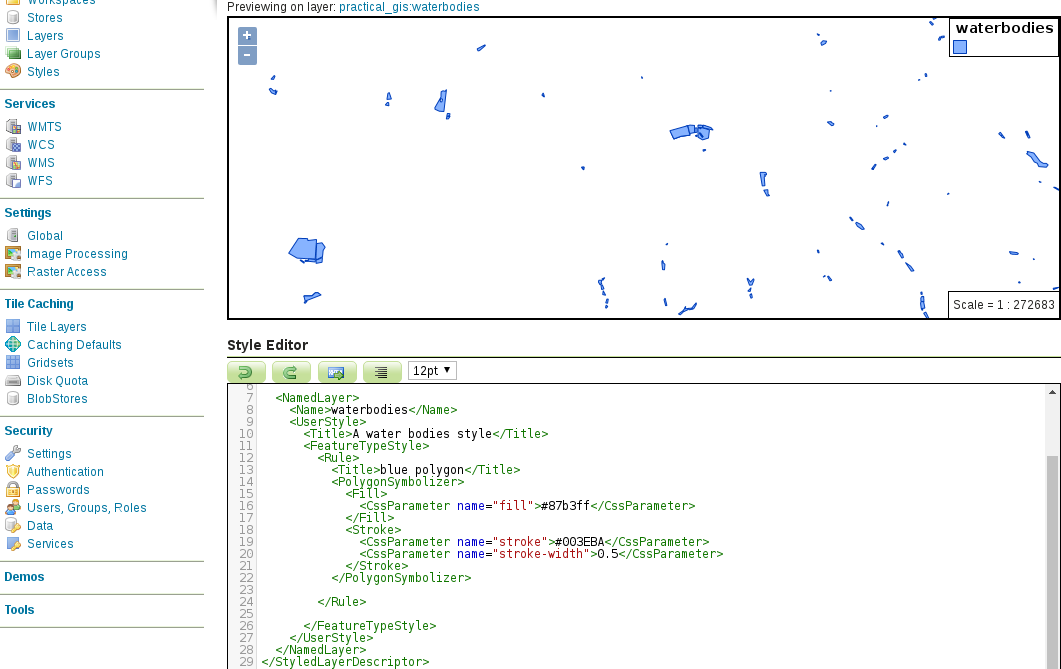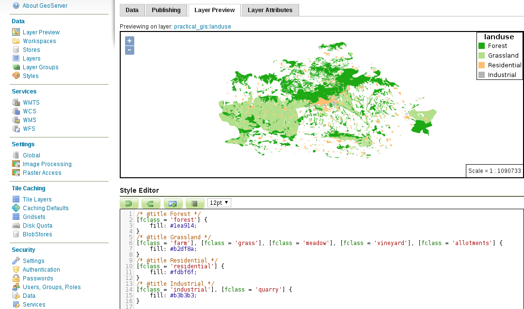 Chapter 12, Styling Your Data in GeoServer, discusses the basic vector and raster symbology usable in GeoServer. It goes through the styling process by using traditional SLD documents. When the concepts are clear, it introduces the powerful and convenient GeoServer CSS, which is also based on SLD.
