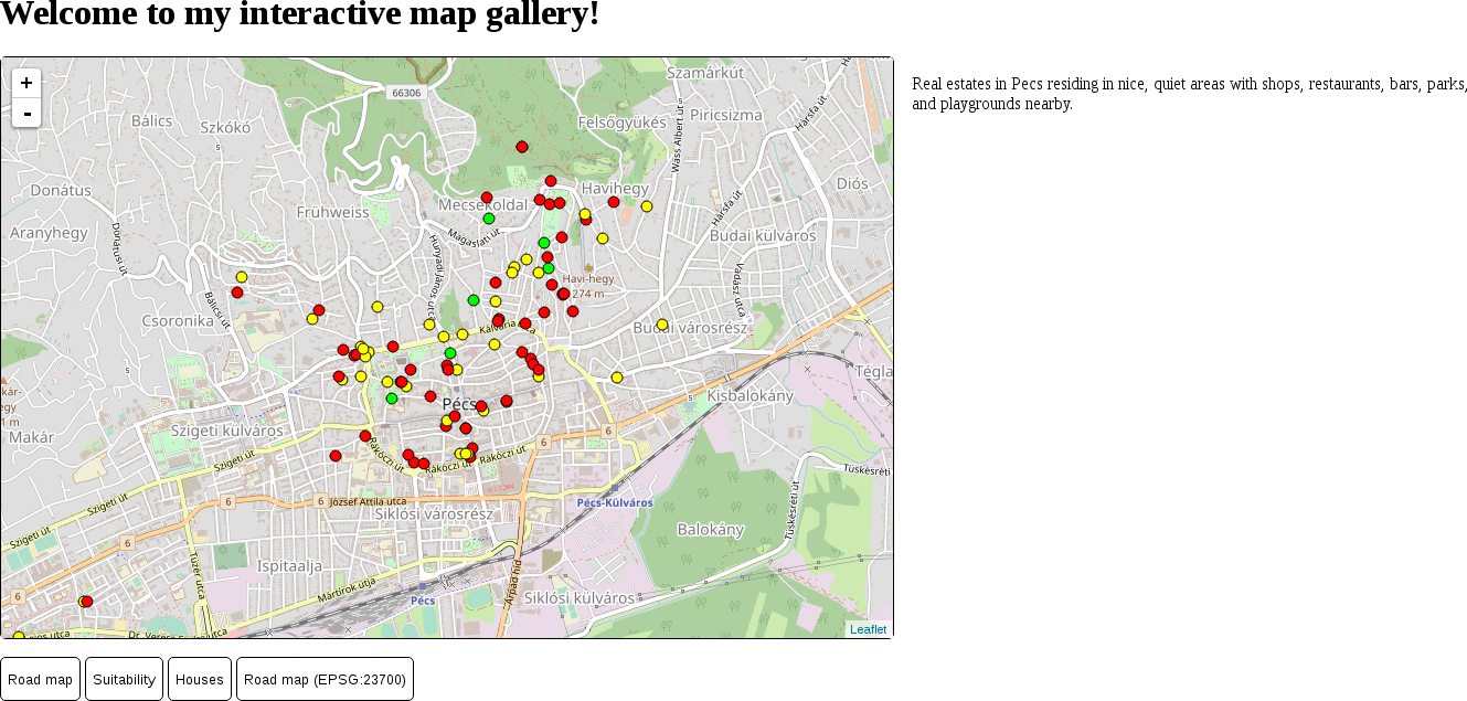 If we click on the third button after refreshing the page, we can see our houses on the map: