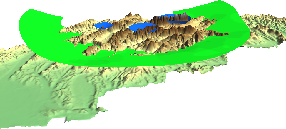 Appendix 1.1: Isosurfaces (800 mm and 1200 mm precipitation) visualized on the Digital Elevation Model of Slovakia provided by the sample slovakia3d dataset for GRASS GIS:
