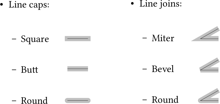 Appendix 1.18: Common line cap and line join styles used in vector graphic software: