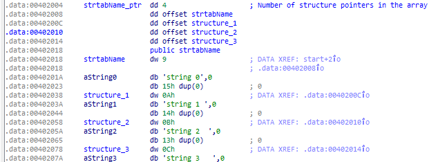 These entries are stored as an array of structures, where each structure contains two fields: