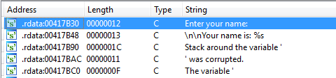 This is a read-only data section and the only thing we have to put in it, is the string we are going to write to the system log: