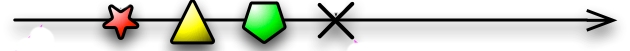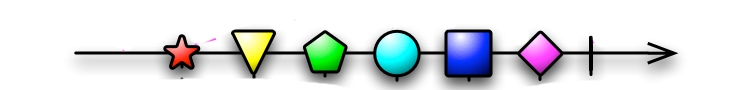 The items that are being emitted are represented by the elements on the line (a star, a triangle, and so on). The operation that is being applied is represented by this: