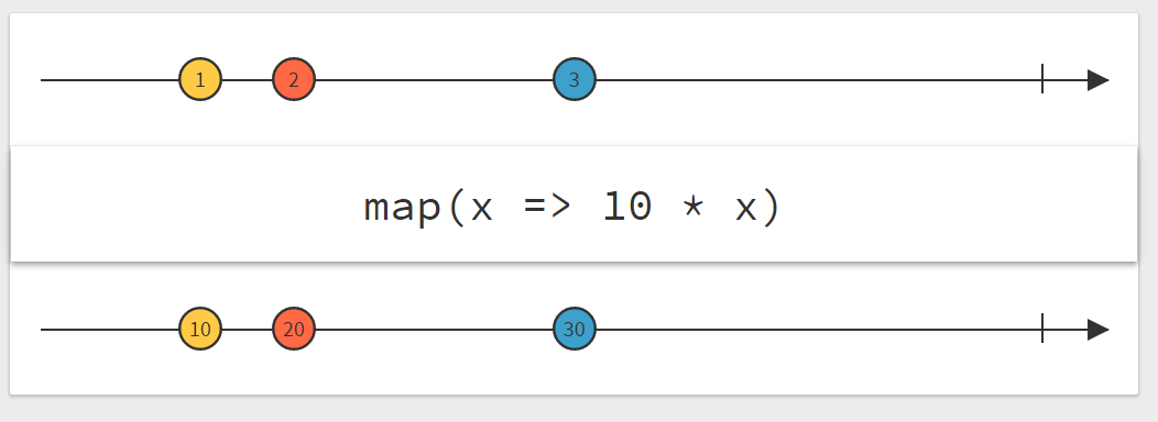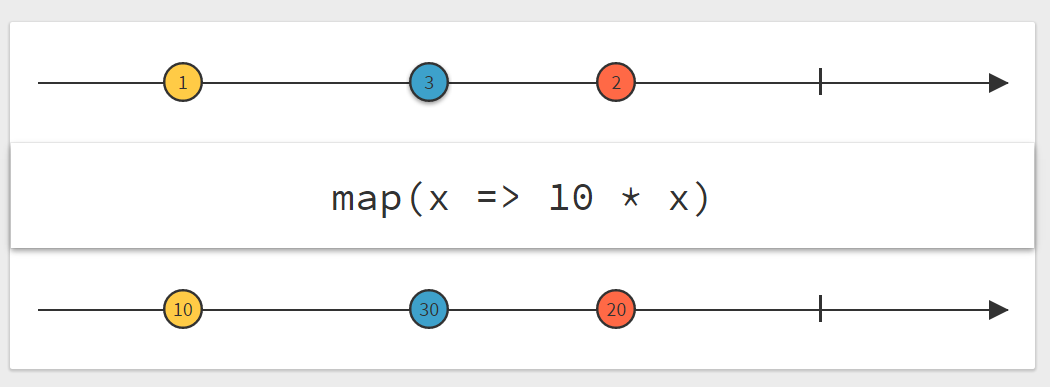 In most cases, these ReactiveX operations are explained using marble diagrams, such as this one: