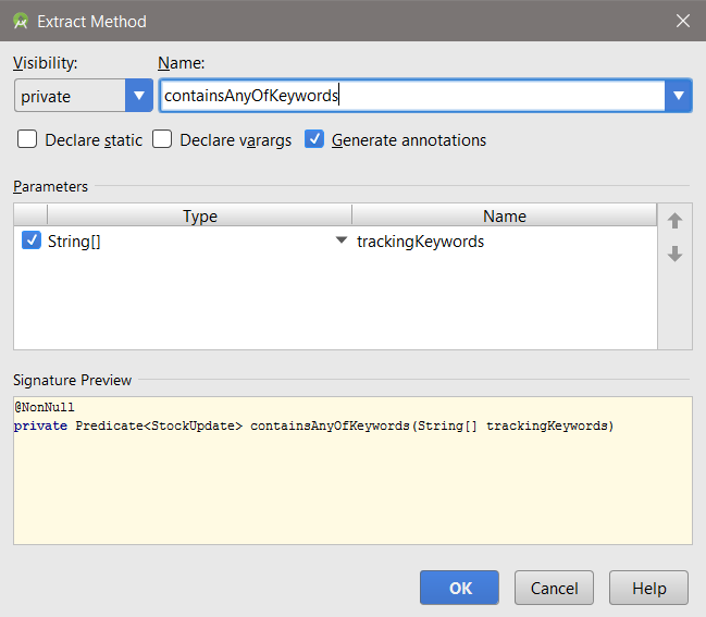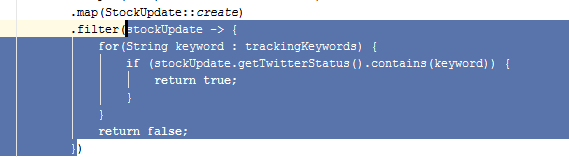This will ensure that the Observables return early if there are no monitored keywords. We could have done the same for the financial stock Observable, but this is useful to show that the Observables can have different flows inside.