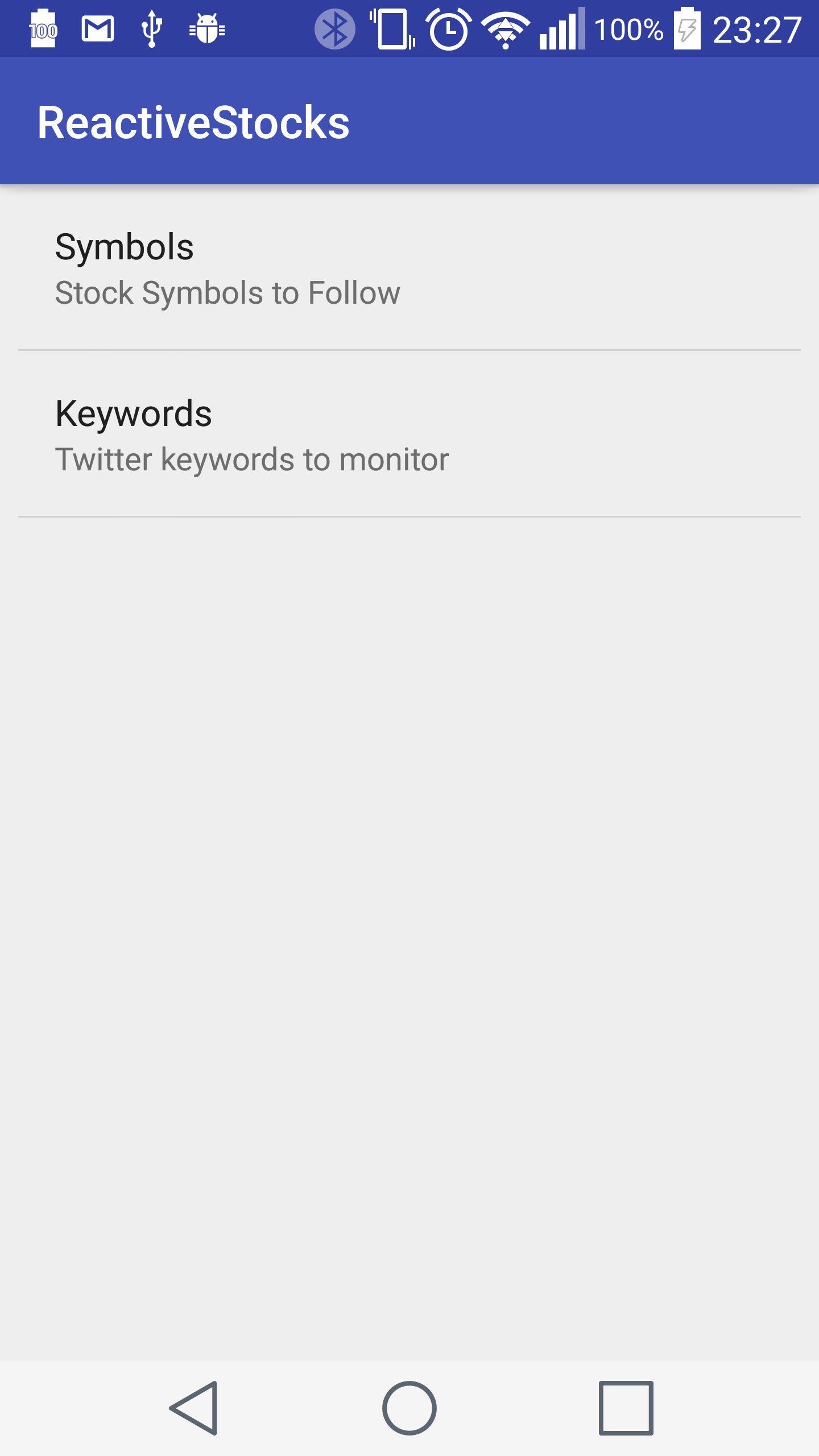 Using the RxPreferences library, we connected a UI that used PreferencesFragment so that the changes will automatically propagate to the main financial stock retrieval flow right at the moment they are made.