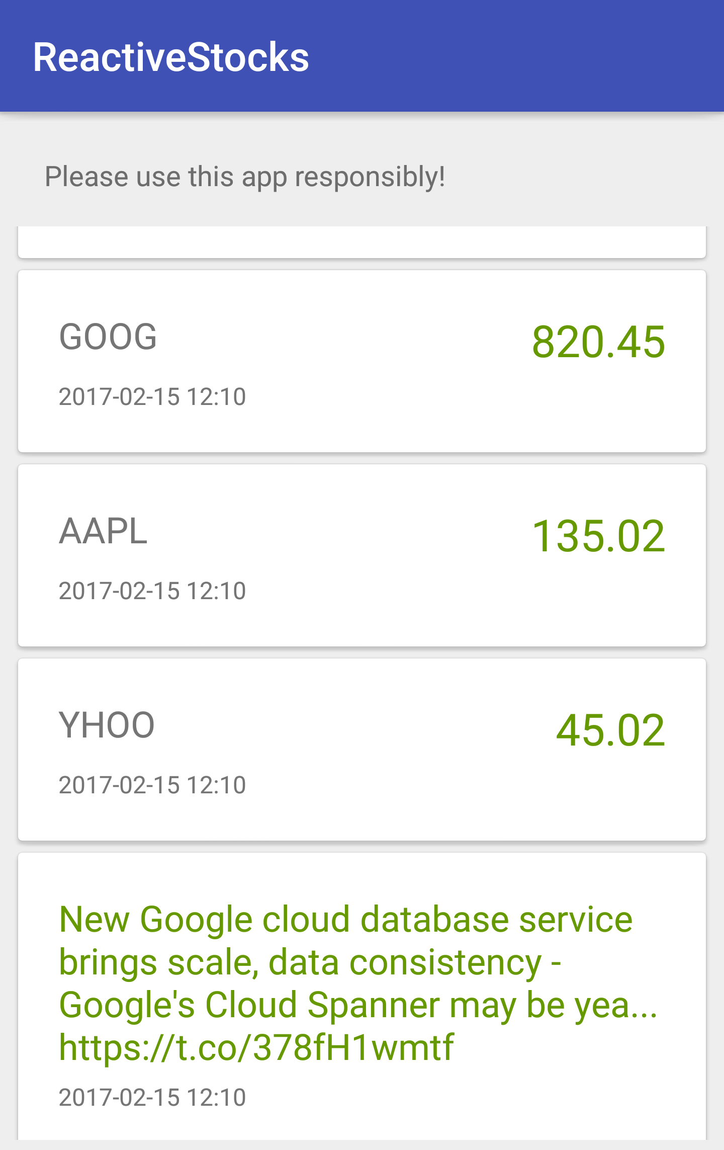 One of the best ways to learn is by example. That's why we will build a simple application to learn RxJava. It will be a very straightforward financial stock quote monitoring app. We will tap into the streams of Yahoo Finance data to display the quotes while using the basics of RxJava.
