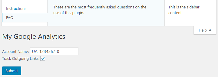 The initial header is followed by multiple sections, which correspond to the various sections that appear within a plugin's display pages. More specifically, these sections contain a complete description of the extension's capability, a step-by-step guide to installing and using your work, a change log containing a list of all the versions with a summary of changes for each of them, frequently asked questions, and screenshots. It is also possible for plugin authors to create their own arbitrary section using the same syntax.