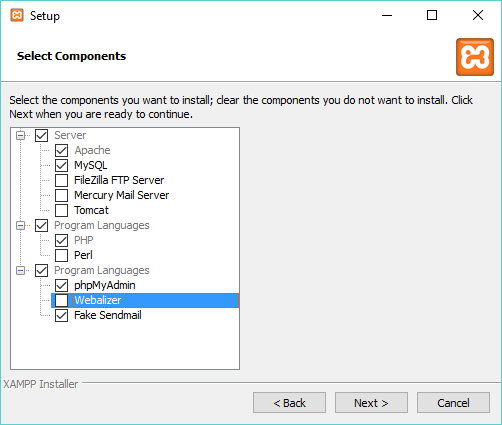 The XAMPP package also includes other components, which are not required to run a local WordPress development site.