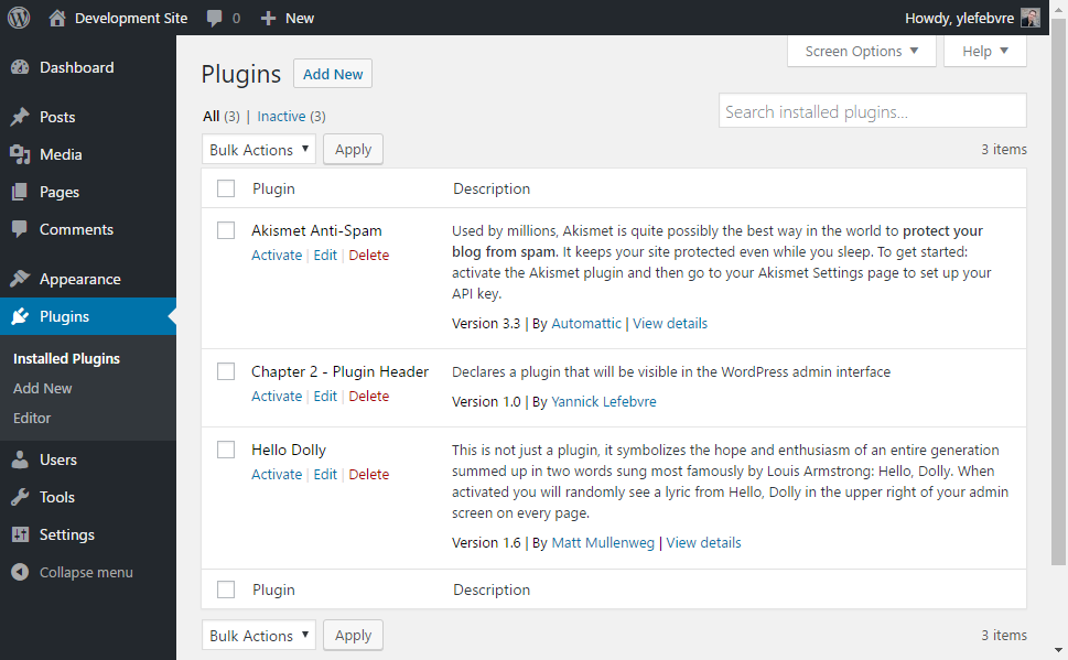 If you want to execute your plugin's code in a local WordPress development installation as you are writing it, the following section shows you how to manage your code.