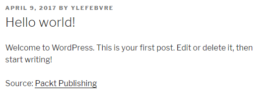 The code bundle for the book is also hosted on GitHub at https://github.com/PacktPublishing/WordPress-Plugin-Development-Cookbook-Second-Edition. We also have other code bundles from our rich catalog of books and videos available at https://github.com/PacktPublishing/. Check them out!