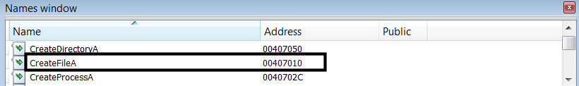 ea = idc.get_name_ea_simple("CreateFileA")
