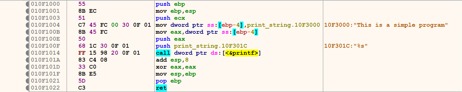 You can see that the assembly instructions are much easier to read than the machine code. Notice how a disassembler translated the byte 55 into a readable assembly instruction push ebp, and the next two bytes 8B EC into mov ebp,esp; and so on:
